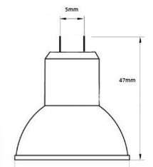 The bases of MR16 lamp are mainly divided into GU 5.3 and GU 10 shown separately in figure 3 and 4. The "G" represents a lamp base that is directly inserted, and the "U" indicates that the base (including pins) has a U-shaped appearance. The number (following "U") represents the center distance between the pair of pins. Due to differences in sockets, MR16 is often referred to as GU 10 as well.