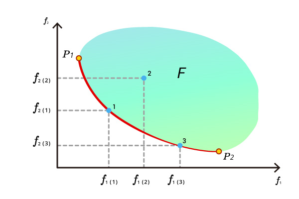 同時滿足最適解,此時只能取得兩個目標的折衷最適解(Pareto-optimal solution)。[2]