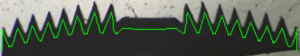 確保成品和設計是一致的效果,開發階段,通常會進行齒形的形狀以及齒尖的倒角的比對,以下圖為例,左圖是設計的flash lens的齒形,右圖比對成品齒形和設計齒形(綠色線)的差異。透過確實的成品和設計的比較