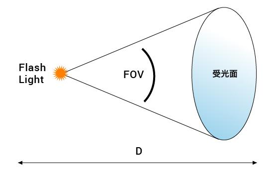 簡稱是FOV,常見規格會有75°、 78°或80°,該FOV的圖示如圖二;FOV的由來是借用成像透鏡的定義,FOV指的是Filed of View(視野),與AOV(Angle of View)很類似,是可以一個數字來決定矩型目標面的長寬值。