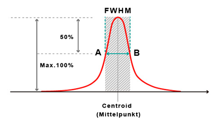 FWHM的另外一個說法,是稱為光束開角度(Beam Angle),Beam Angle更常見於應用在LED元件的規格書上的稱呼,定義和FWHM是一樣的,只是多數的LED是呈現接近旋轉對稱的,所以常會用單一值做為LED光形的描述(假設旋轉對稱),若為橢圓光形,則會用兩個Beam Angle值來做光形的指標。